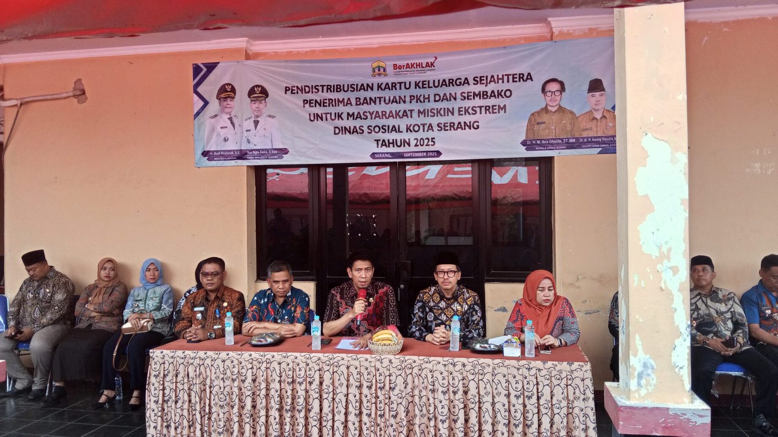 Penaindonews.com, kota serang,- Asda 1 kota serang Subagyo dan Kadinsos Kota serang Muhammad Ibra Gholibi, Hadiri kegiatan Pendistribusian Kartu Keluarga Sejahtera (KKS) untuk Penerima Bantuan PKH Dan Sembako, bagi Masyarakat Miskin Ekstrem Oleh Dinas Sosial Kota Serang Tahun 2025, di kantor kecamatan walantaka kota serang. Kamis (18/09/2025).