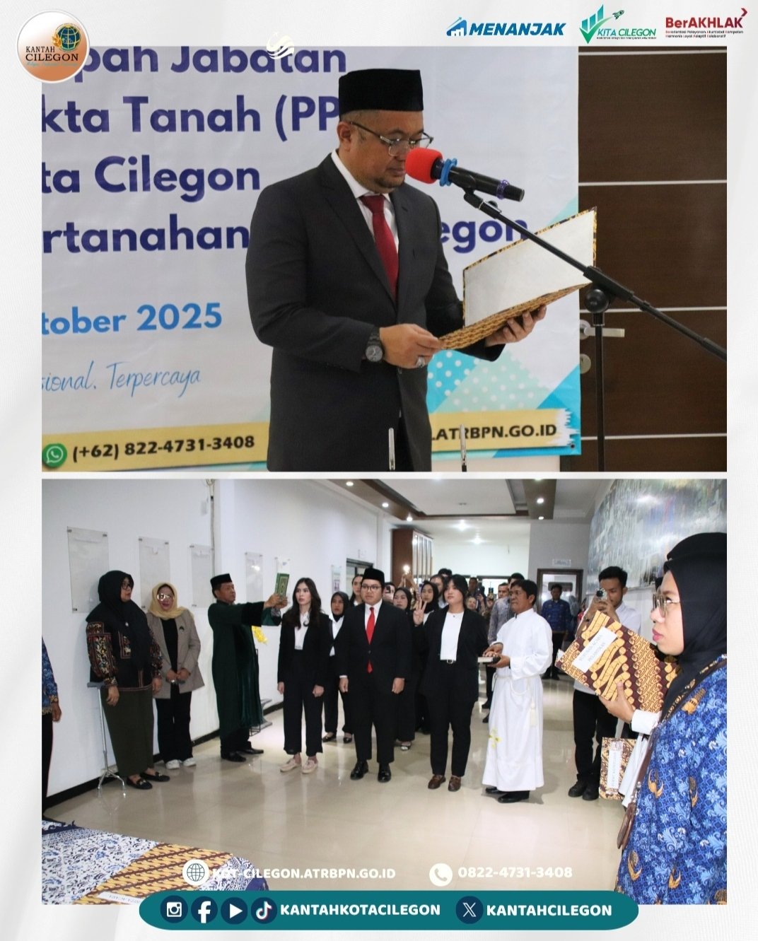 Pengambilan Sumpah Jabatan PPAT Tahun 2025 Digelar di Kantor Pertanahan Kota Cilegon Oktober 2, 2025Oktober 2, 2025 rohman syah No comments #Kementerian ATR/BPN #Kementerian ATR/BPN RI berita banten Berita Cilegon berita nasional