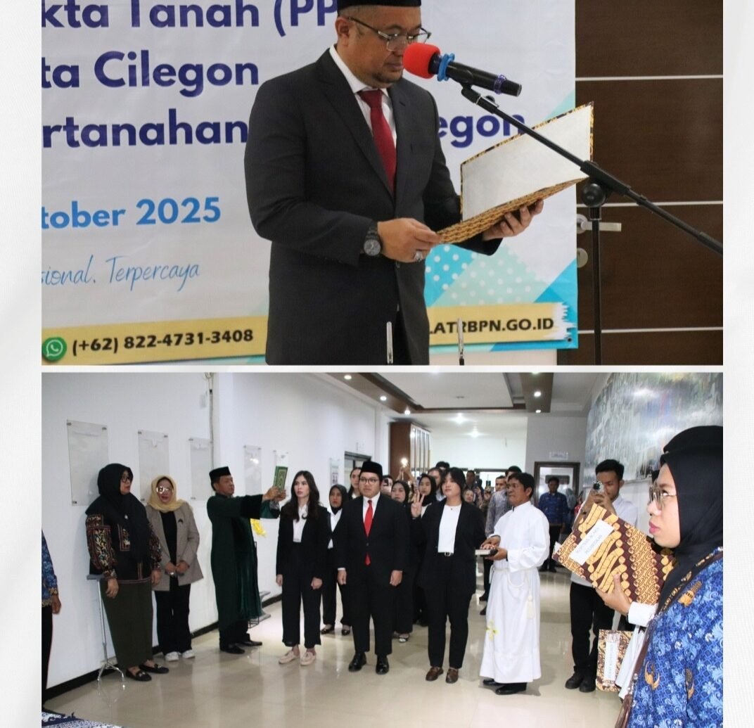 Penaindonews.com, Cilegon – Kantor Pertanahan Kota Cilegon menggelar kegiatan Pengambilan Sumpah Jabatan Pejabat Pembuat Akta Tanah (PPAT) Tahun 2025 pada Rabu (1/10/2025). Acara berlangsung khidmat dan dipimpin langsung oleh Kepala Kantor Pertanahan Kota Cilegon, Osman Affan, S.Sos., M.M,. QRMP.