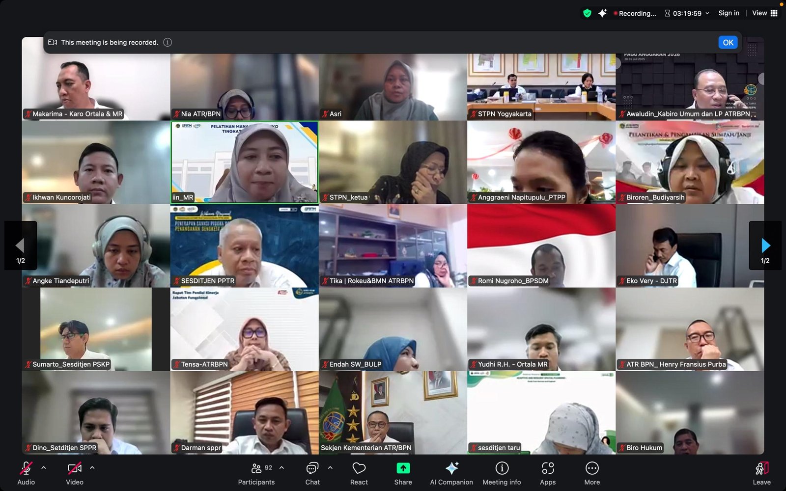Pada pertemuan yang dimoderatori oleh Kepala Bagian Manajemen Risiko, Iin Herawati ini, hadir sejumlah Pejabat Pimpinan Tinggi Pratama di lingkungan Kementerian ATR/BPN beserta jajaran.