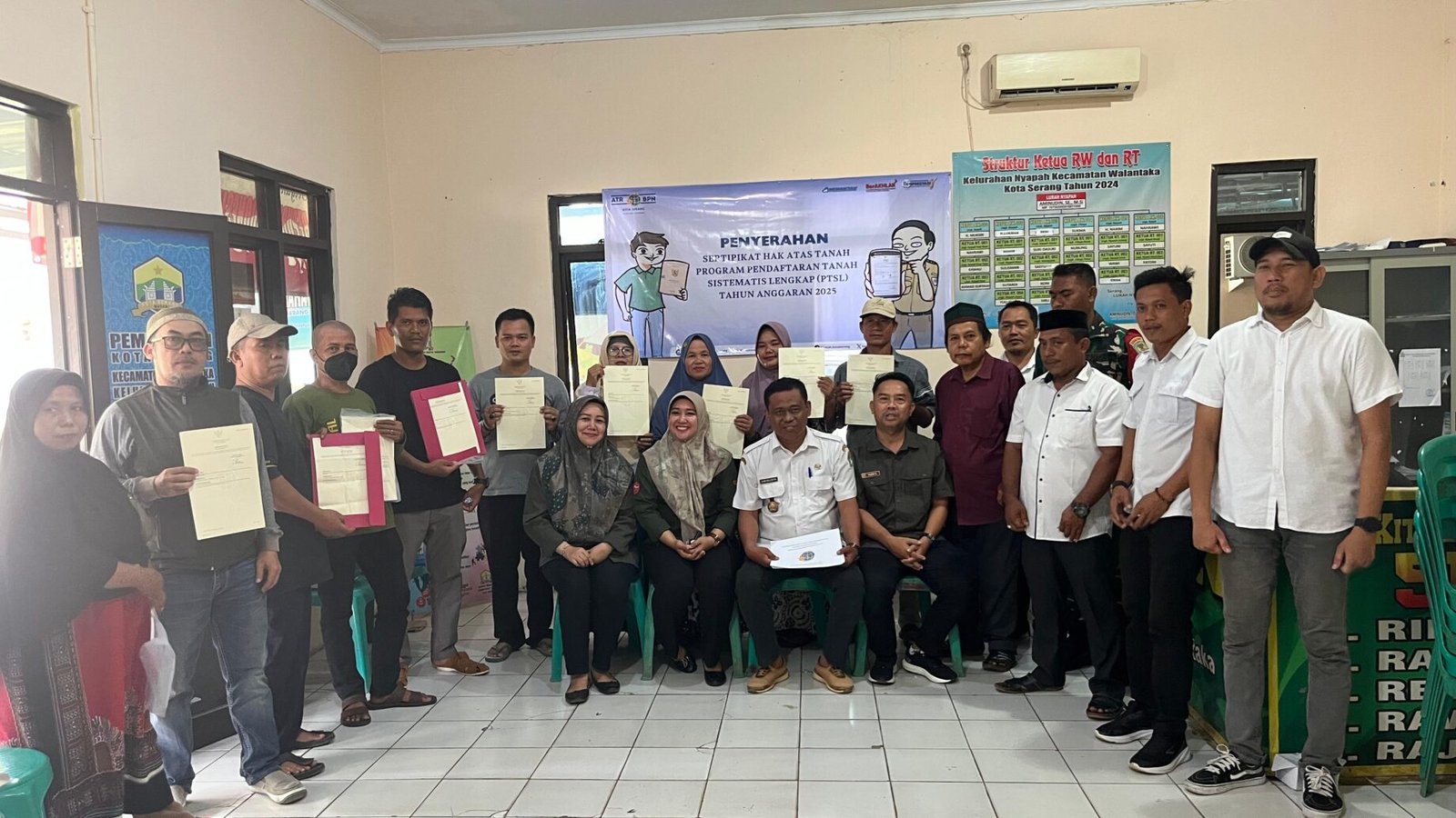 Penaindonews.com, Kota serang– Warga kelurahan nyapah kembali menerima sertifikat PTSL dari Satgas PTSL BPN kota serang, kegiatan berlangsung di Aula kantor kelurahan nyapah, Rabu 29/10/2025.