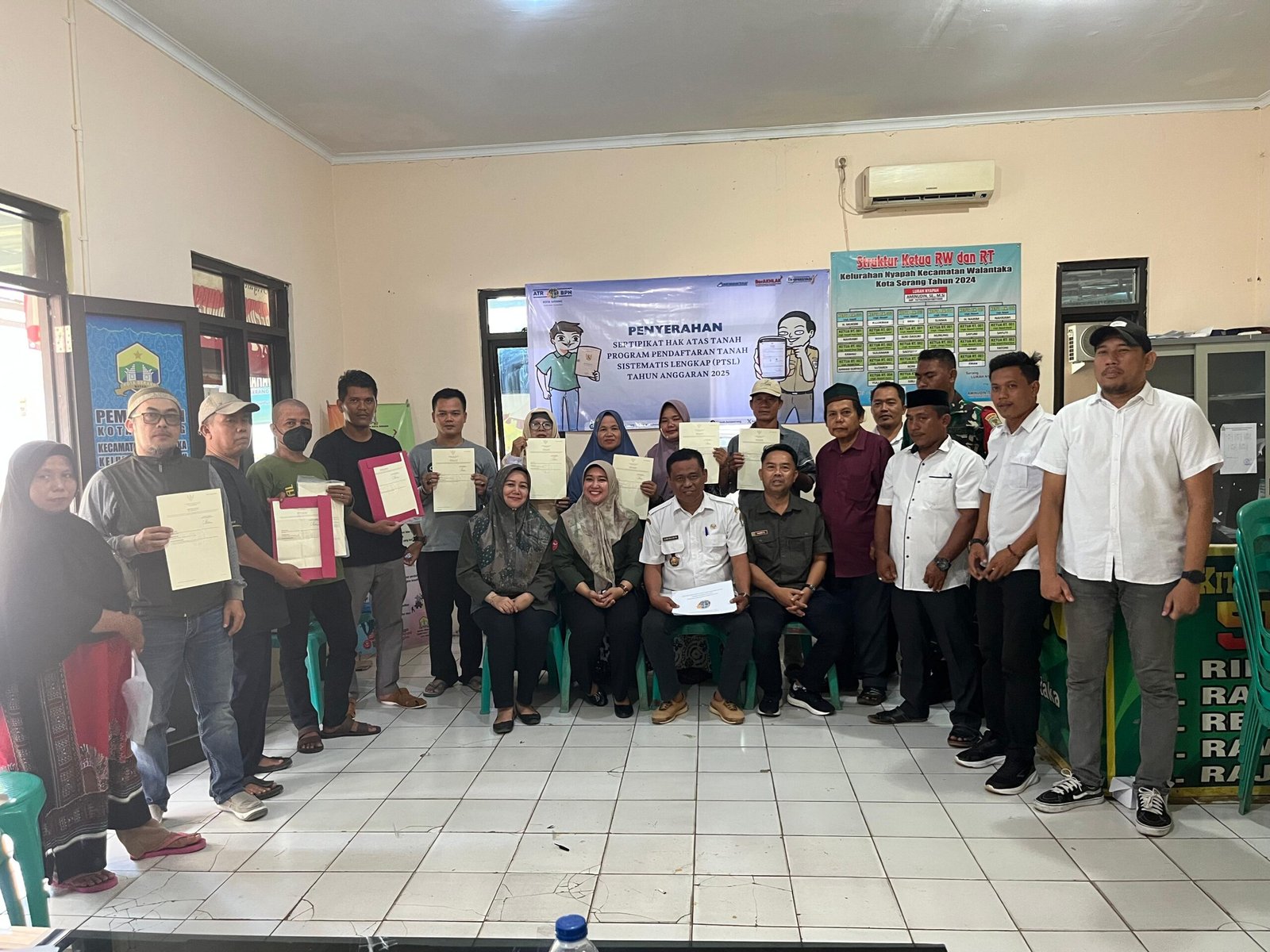 Dalam penyerahan sertifikat PTSL ini, sebanyak 68 warga menjadi penerima manfaat,  dan 15 sertifikat di serahkan secara simbolis, yang sebelumnya ada 6 sertifikat PTSL yang telah di serahkan secara langsung ke penerima manfaat,  selanjutnya akan dilakukan penyerahan secara bertahap oleh satgas PTSL BPN kota serang.