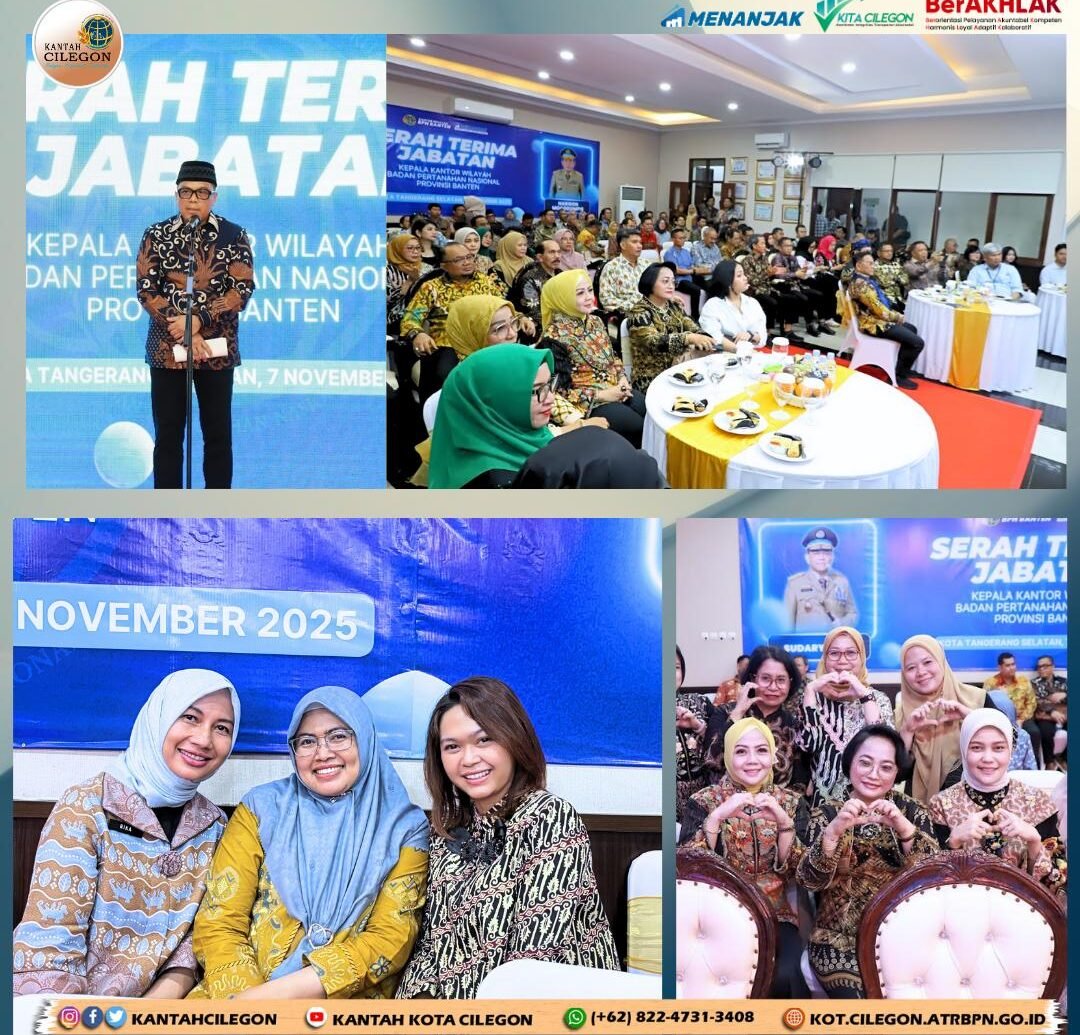Penaindonews.com, Tangerang Selatan,- 7 November 2025 — Kantor Pertanahan Kota Cilegon menghadiri kegiatan Serah Terima Jabatan Kepala Kantor Wilayah Badan Pertanahan Nasional (BPN) Provinsi Banten, yang berlangsung di Kota Tangerang Selatan.