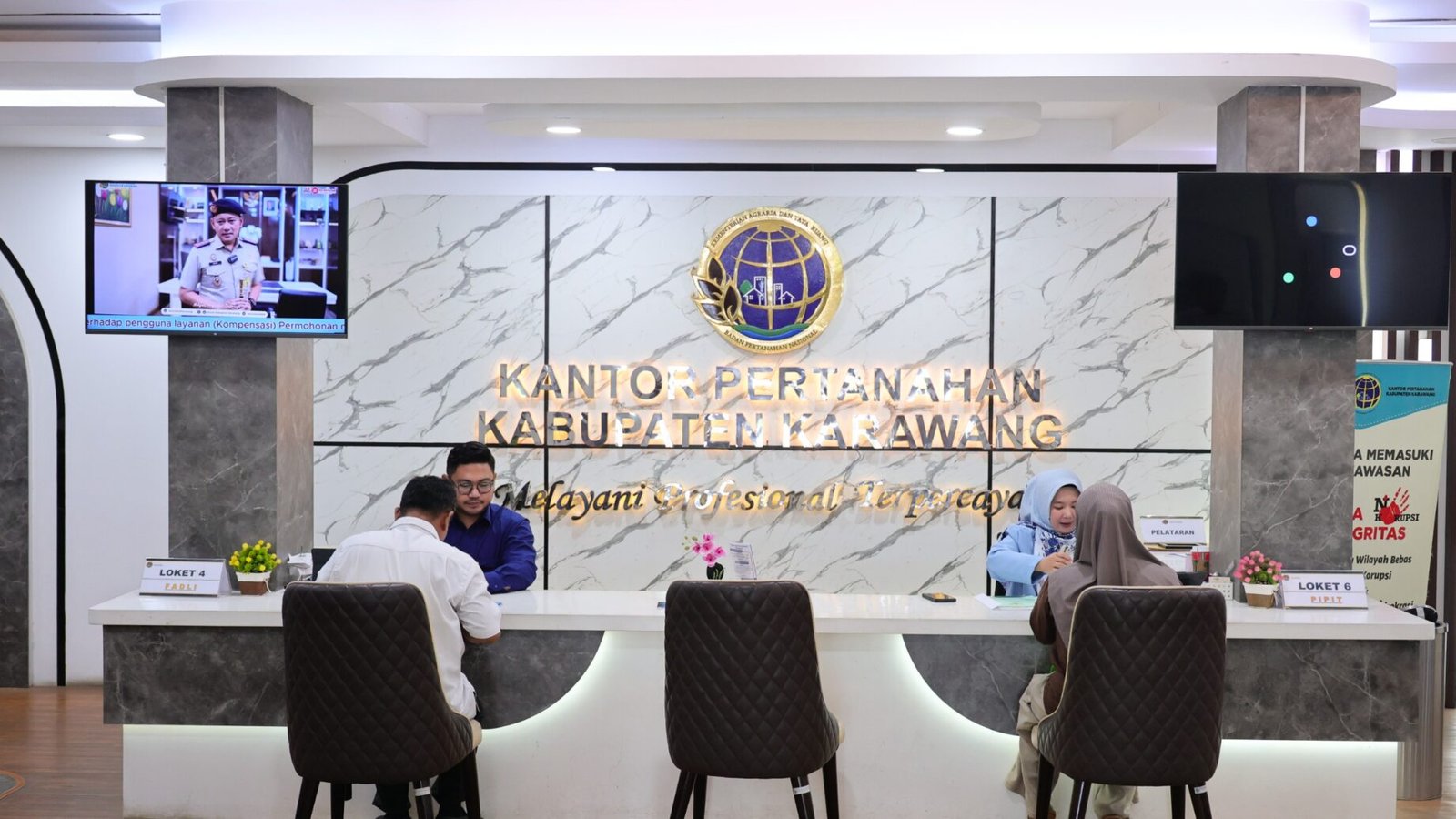 “Sudah tahu kapan jam-jamnya datang, jadi tidak perlu makan waktu lama untuk antre. Terus nanti kan di Sentuh Tanahku, kita bisa lihat berkas kita sudah sampai mana. Kita tinggal lihat di Sentuh Tanahku, terus cek nomor pendaftarannya, cek nomor berkas ya. Lihat kode _captcha_, udah kelihatan,” kata Ana Dahliana, saat sedang mengurus berkas pertanahan di Kantor Pertanahan Kabupaten Karawang.