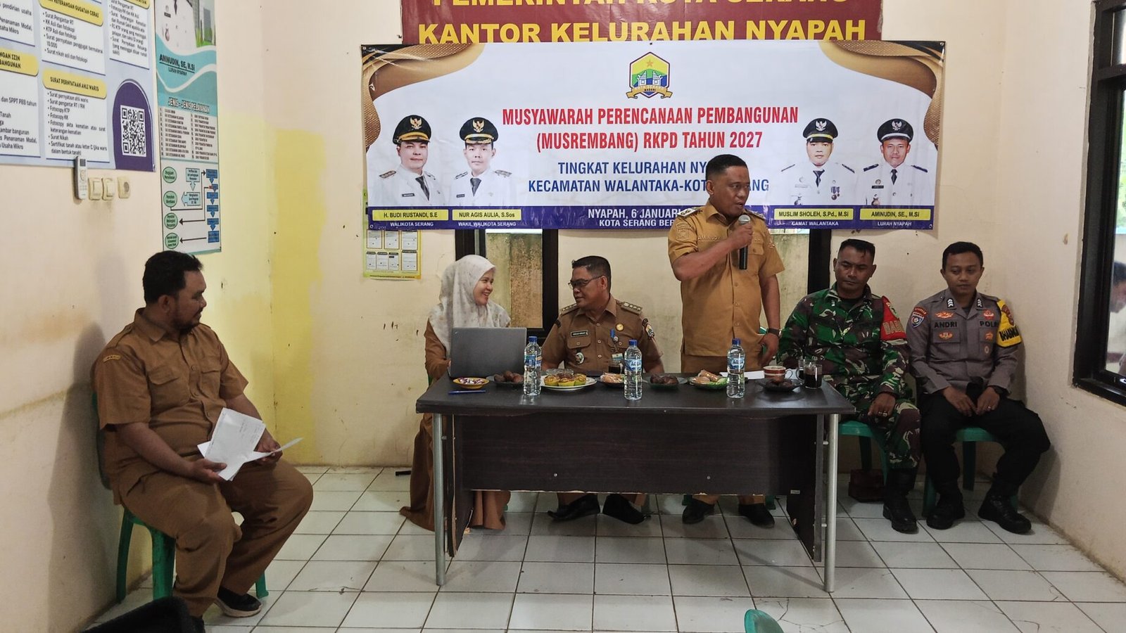 Acara Musrenbang RKPD Tahun 2027 tingkat kelurahan nyapah di buka langsung oleh camat walantaka, Di sampaikan oleh camat walantaka, Muslim Sholeh, bahwa Musrenbang RKPD tingkat kelurahan perlu di laksanakan, guna mengetahui secara pasti aspirasi dari masyarakat terkait usulan pembangunan di wilayah masing-masing yang masuk dalam standar prioritas.