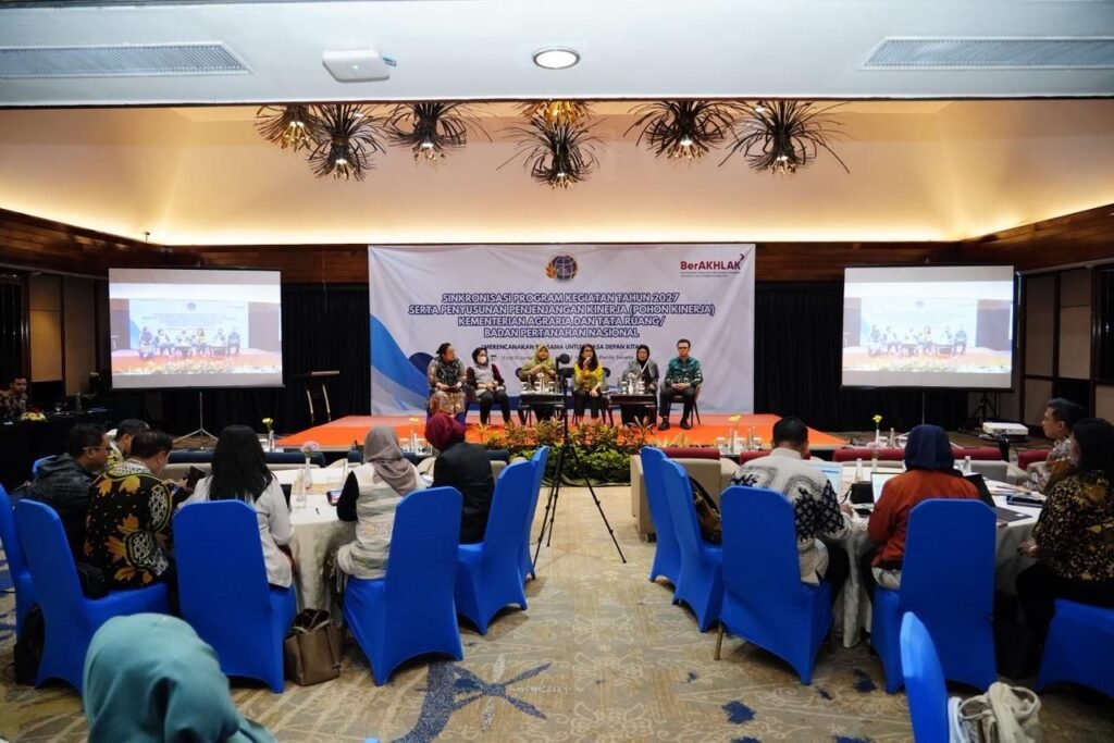 Penaindonews.com, Jakarta – Kementerian Agraria dan Tata Ruang/Badan Pertanahan Nasional (ATR/BPN) menggelar kegiatan Sinkronisasi Program Kegiatan Tahun 2027 serta Penyusunan Penjenjangan Kinerja (Pohon Kinerja) pada Senin (12/01/2026). Kegiatan yang berlangsung di Hotel Sari Pacific, Jakarta, ini menegaskan pentingnya konsistensi dalam sinkronisasi program dan kegiatan antara pusat dan daerah guna memastikan efektivitas perencanaan, penganggaran, serta capaian kinerja yang berorientasi pada hasil.