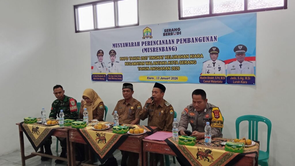 Penaindonews.com, kota serang, – Sudah menjadi kegiatan rutin tahunan untuk dapat mengakomodir aspirasi masyarakat terkait usulan pembangunan, pemerintah kelurahan Kiara melaksanakan kegiatan Musrenbang RKPD Tahun 2027, kegiatan berlangsung di Aula kantor kelurahan kiara , kecamatan walantaka kota serang. Selasa (13/01/2025).