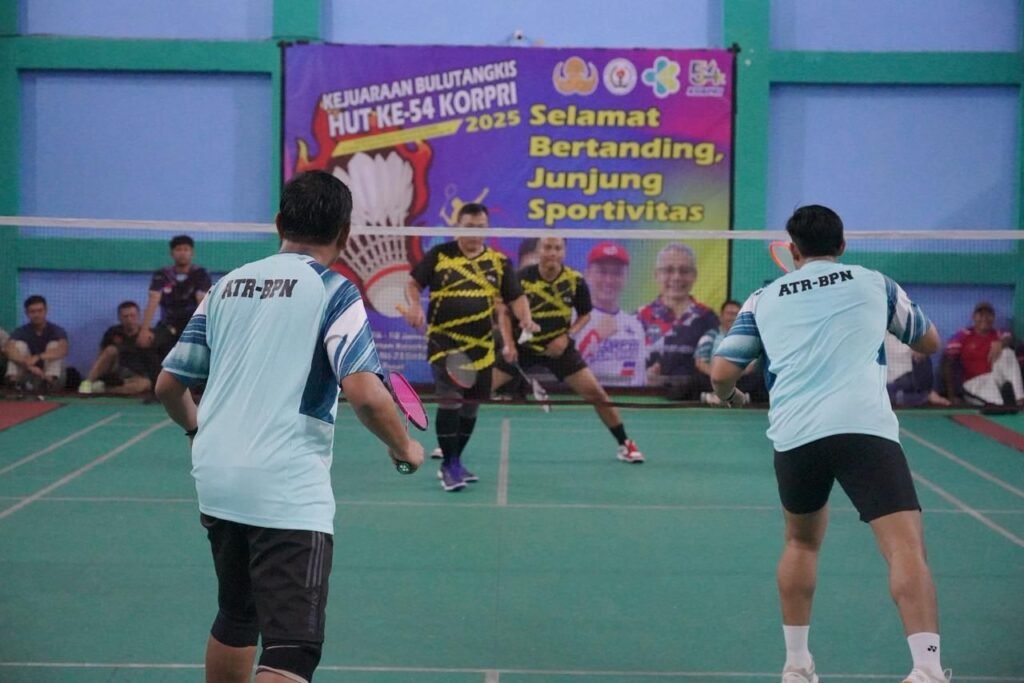 Penaindonews.com, Jakarta – Kementerian Agraria dan Tata Ruang/Badan Pertanahan Nasional (ATR/BPN) turut berpartisipasi dalam Kejuaraan Bulutangkis Hari Ulang Tahun (HUT) ke-54 Korps Pegawai Republik Indonesia (KORPRI) yang diselenggarakan di Gelanggang Olahraga (GOR) Kementerian Kesehatan Republik Indonesia, Jakarta, Jumat (16/01/2026). Pada kategori Ganda Putra Eksekutif, Kementerian ATR/BPN berhasil menyingkirkan para pesaingnya di babak 16 besar dan perempat final, sehingga melaju ke babak semifinal yang akan digelar pada Minggu (18/01/2026).