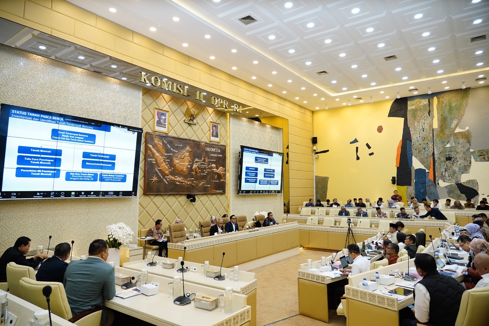 “Kalau soal masalah tanah terdampak, tantangan paling berat adalah merekonstruksi data karena warkahnya hilang, petanya hilang, kemudian fisiknya berubah, tapal batasnya juga berubah, ini yang agak berat di situ,” ujar Menteri Nusron.
