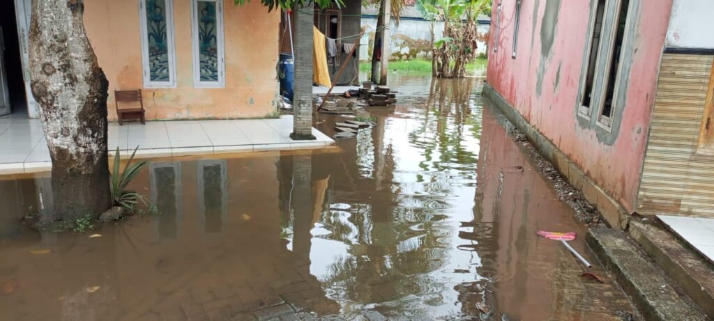Selain kondisi rumah yang rusak, lingkungan sekitar rumah saat ini juga dilaporkan tergenang air akibat banjir yang melanda wilayah tersebut.