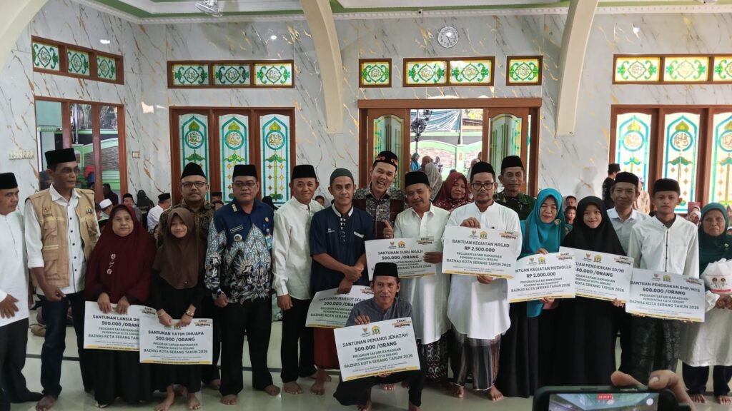 Dalam kegiatan safari Ramadhan 1447H yang di pimpin langsung oleh wakil walikota serang Nur Agis Aulia, menyerahkan sejumlah bantuan kepada 150 anak yatim-piatu dan lansia, dengan memberikan uang tunai sebesar 300 ribu rupiah dan paket sembako, selain itu di berikan juga bantuan berupa uang tunai sebesar 2,5 juta rupiah kepada ketua DKM masjid Darurrohman.