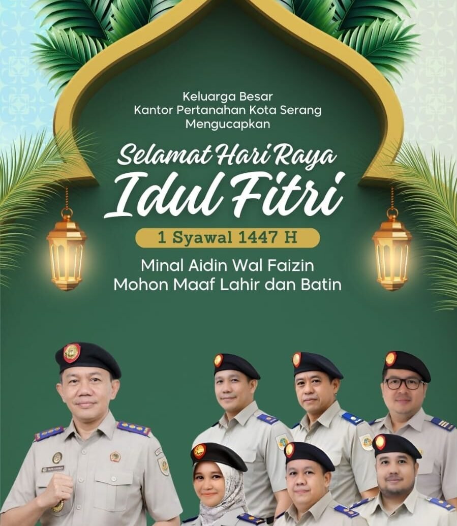 Penaindonews.com, kota serang, – Keluarga Besar Kantor Pertanahan Kota Serang dan segenap jajaran mengucapkan Selamat Hari Raya Nyepi Tahun Baru Saka 1948 bagi Umat Hindu, dan Selamat Hari Raya Idul Fitri 1447 Hijriah bagi Umat Muslim. Minal Aidin Wal Faizin, Mohon Maaf Lahir dan Batin.