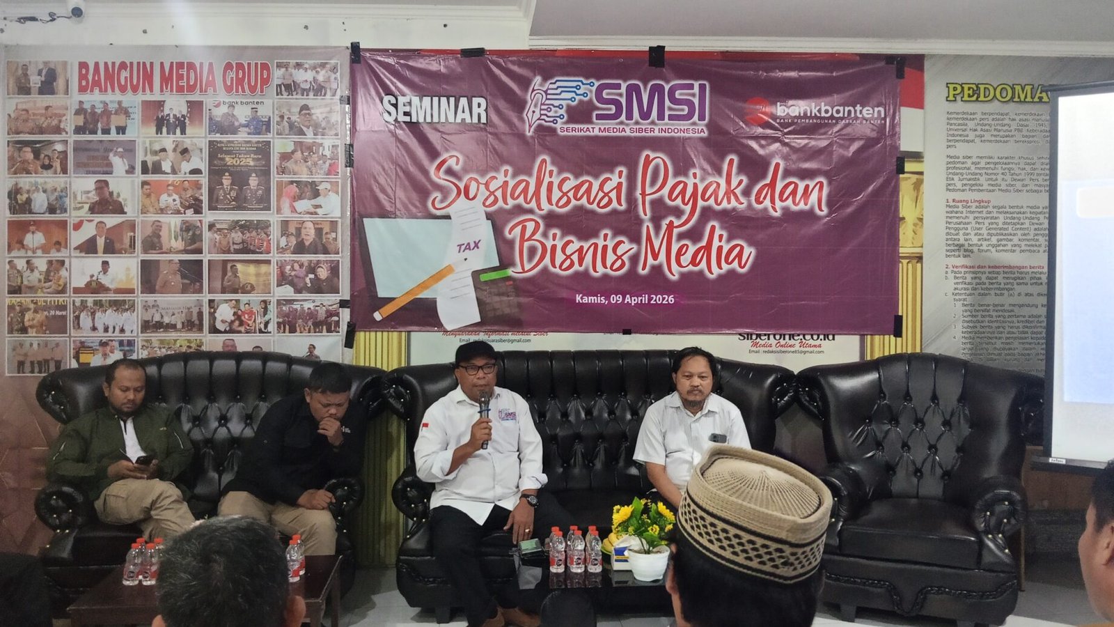 Kegiatan ini, Dihadiri oleh Ketua SMSI provinsi Banten Lesmana Bangun bersama jajaran pengurus, Ketua dan pengurus SMSI kabupaten/kota se-provinsi Banten, serta menghadirkan Nara sumber dari Kanwil Direktorat Jenderal Pajak (DJP) provinsi Banten, Hejra Dorojatun.