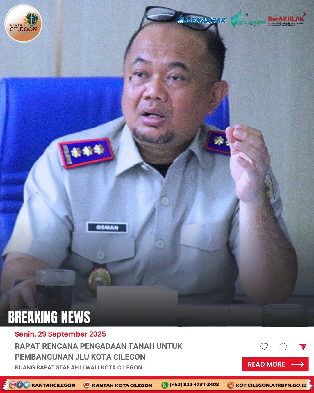 Kantor Pertanahan Kota Cilegon Dukung Rencana Pembangunan Jalan Lingkar Utara (JLU) Kota Cilegon September 30, 2025September 30, 2025 rohman syah No comments #BPN Cilegon #Kementerian ATR/BPN #Kementerian ATR/BPN RI berita banten Berita Cilegon berita nasional